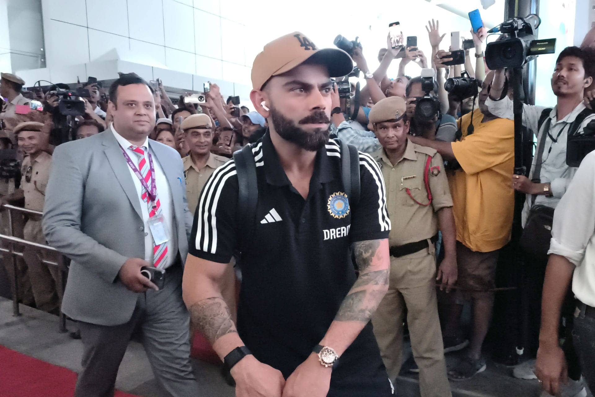 Folks, the one and only Virat Kohli has landed in Mumbai, and let me tell you, he’s looking fantastic! Just had a huge New Year bash in Dubai—tremendous party! Now, he’s ready to take on those Kiwis. The Men in Blue are back, and with Shubman and Shreyas returning, it’s going to be a spectacular series. Kohli is primed to dominate New Zealand like never before!